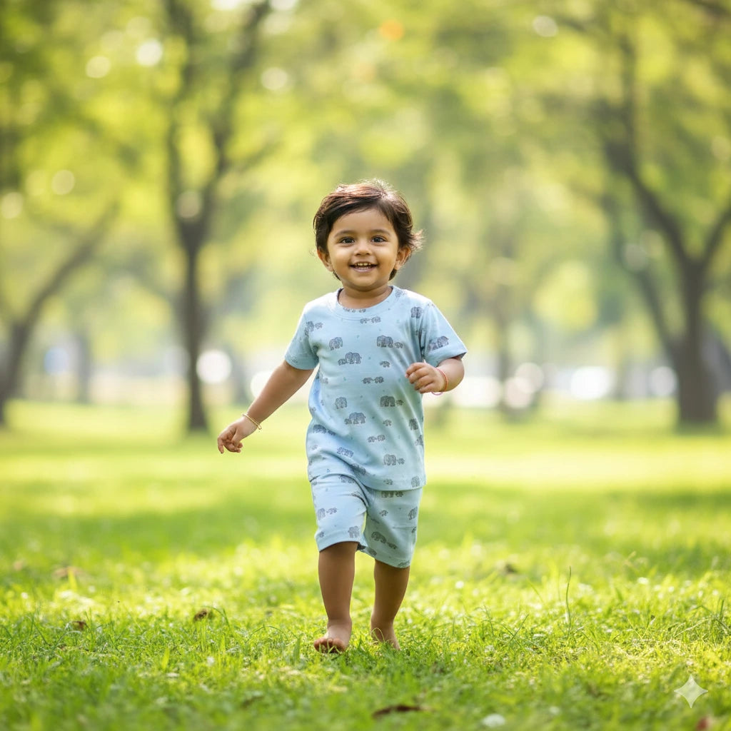 Soft cotton elephant print co-ord set with full-length pants — breathable, gentle, and perfect for everyday comfort.