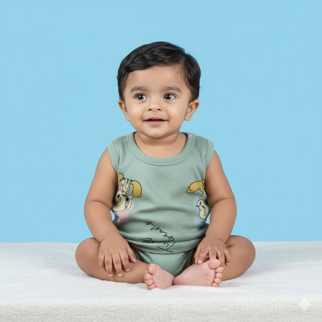 Mint green ribbed cotton co-ord set with Tweety Bird and “Tweet Dreams” print. Made from 100% bio-washed rib knit cotton (180 GSM). Soft, breathable, and ideal for everyday comfort.