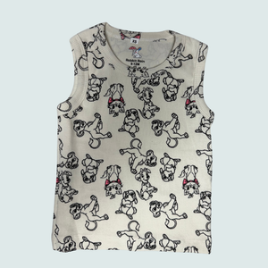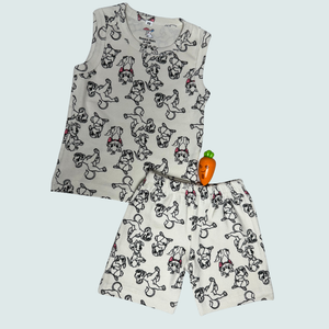 Simple, soft, and playfully adorable – this sleeveless co-ord set is perfect for your little one’s everyday comfort. The set features a matching tank-style top and shorts printed with cute playful puppies and subtle pink bow accents on a soft cream base – a charming design that feels sweet yet minimal.