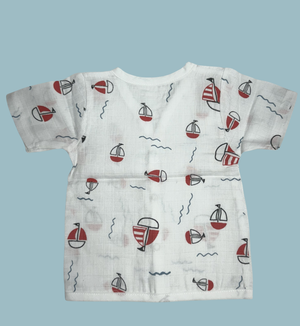 Sail your little one into comfort with this Red Sailboat Muslin Cotton Jabla. Featuring playful sailboats and wavy patterns, this jabla brings a nautical charm to your baby’s outfit. Made from lightweight muslin cotton, it allows free airflow and keeps your baby cool throughout the day.