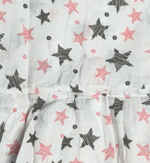Dress your little one in comfort and charm with our Muslin Baby Frock featuring a playful pink and black star print. Crafted from 100% muslin cotton, this frock is lightweight, airy, and gentle on delicate skin.