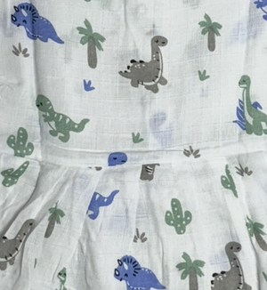 Adorable muslin frock with playful dinosaur print, designed with frill sleeves and a front-open style for easy wear. Soft, airy, and perfect for baby’s all-day comfort.