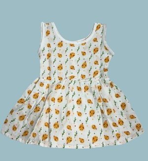 Dress your little one in this Muslin Cotton Baby Frock featuring a delightful ladybug print all over. The sleeveless design keeps it airy and cool, while the front button opening makes it convenient for parents to dress their child with ease.