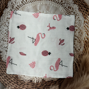 Make baby care fun and gentle with our Muslin Cotton Baby Wipes featuring a tropical pink flamingo and pineapple print. These reusable cloth napkins are made from 100% premium muslin cotton, known for its lightweight, breathable feel and quick-drying nature.
